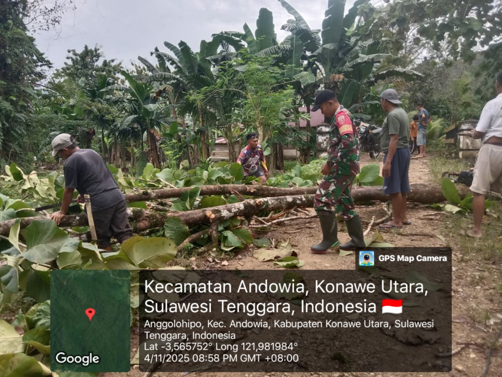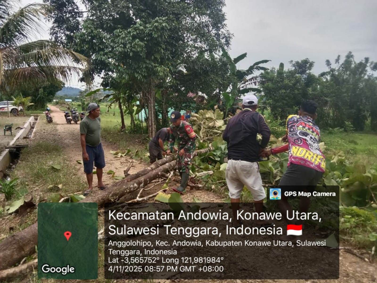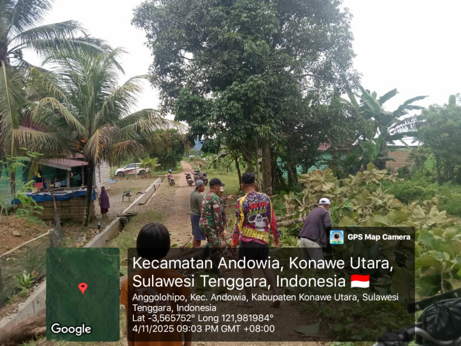 Konawe Utara – Dalam rangka meningkatkan kepedulian masyarakat terhadap kebersihan dan kesehatan lingkungan, Babinsa Koramil 1430-02/Asera, Kopda Alan, melaksanakan kegiatan Karya Bakti bersama warga di Desa Anggolohipo, Kecamatan Andowia, Kabupaten Konawe Utara, Sulawesi Tenggara, pada Selasa (4/11/2025) pukul 08.30 WITA.