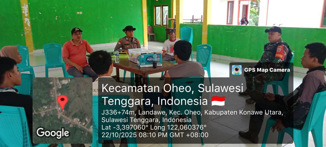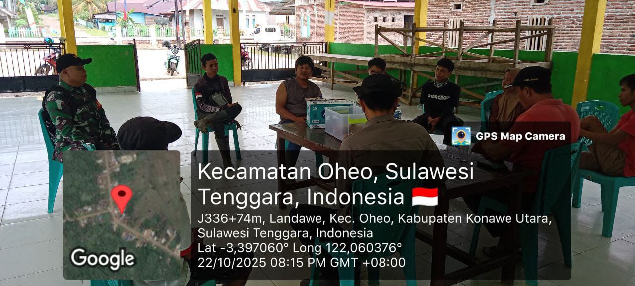 Konawe Utara – Dalam rangka mempererat hubungan silaturahmi serta menjaga kondusifitas wilayah binaan, Sertu Ishak, Babinsa Koramil 1430-02/Asera, melaksanakan kegiatan pemantauan wilayah sekaligus komunikasi sosial (Komsos) bersama warga di Desa Landawe, Kecamatan Oheo, Kabupaten Konawe Utara, pada Rabu (22/10/2025)