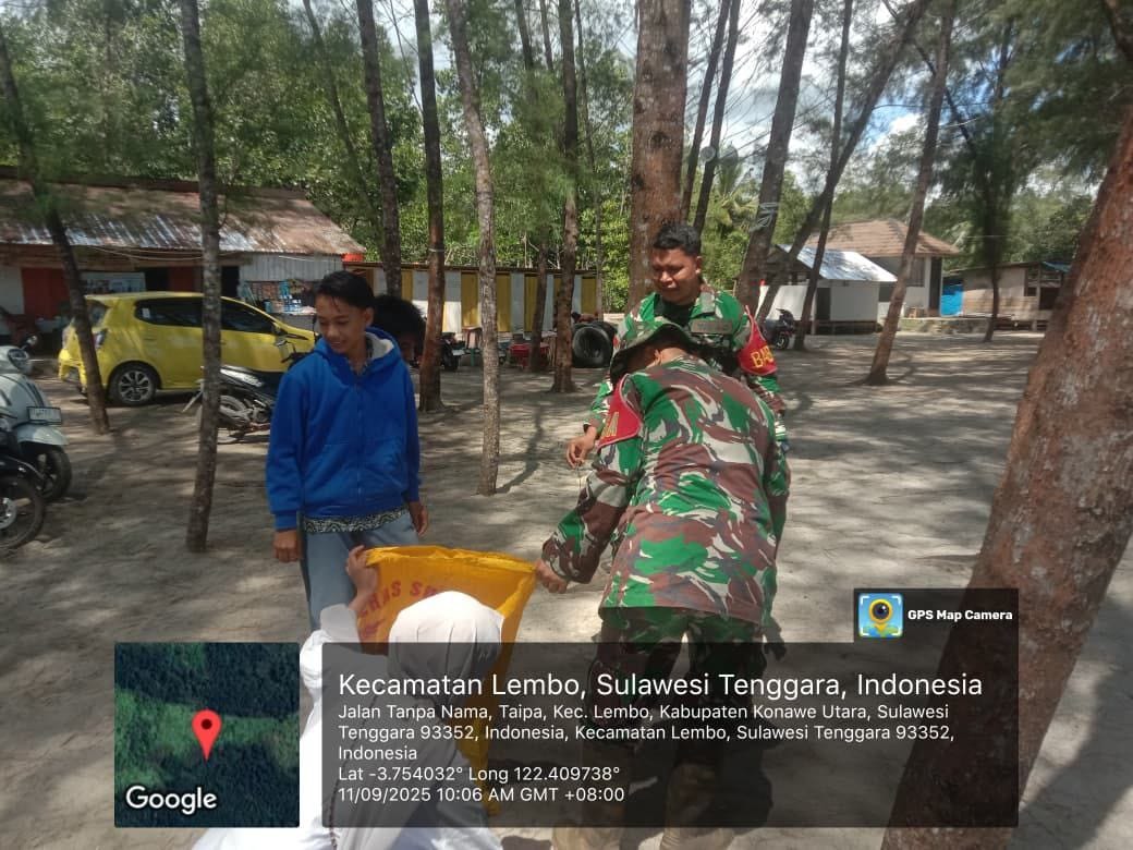 Kegiatan ini dipimpin oleh Serka Muh. Aldin Afrillah dan Praka Krijen, Babinsa Koramil 1430-01/Lasolo, yang turut melibatkan masyarakat Taipa serta mahasiswa Universitas Halu Oleo (UNHALU) Kendari.