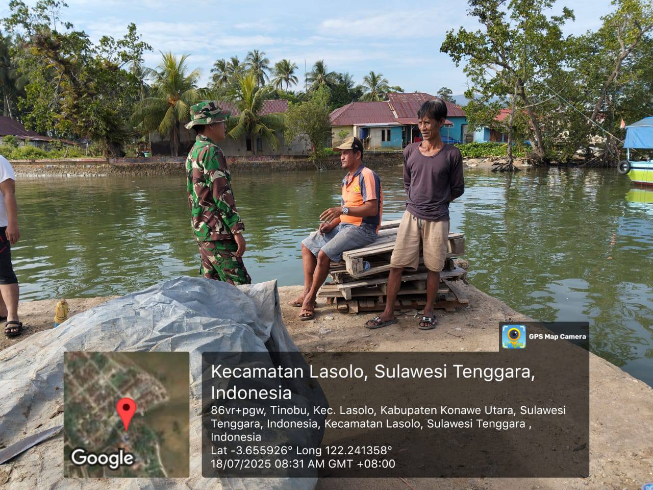 KONUT — Dalam rangka penguatan teritorial dan pembinaan pemberdayaan wilayah pertahanan konawe utara, Kodim 1430/Konut dalam menjaga stabilitas keamanan dan mempererat hubungan dengan masyarakat, Babinsa Koramil 1430-01/Lasolo, Kopda Andy Agung Prihatna, melaksanakan kegiatan pemantauan wilayah yang dirangkaikan dengan komunikasi sosial (Komsos) di Kelurahan Tinobu, Kecamatan Lasolo, Kabupaten Konawe Utara, Provinsi Sulawesi Tenggara, pada hari Jumat, Jumat (18/7/2025)