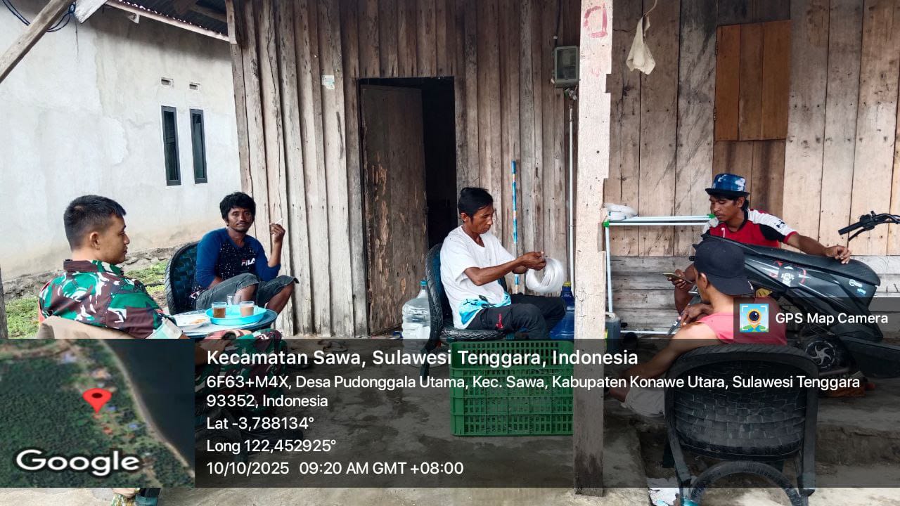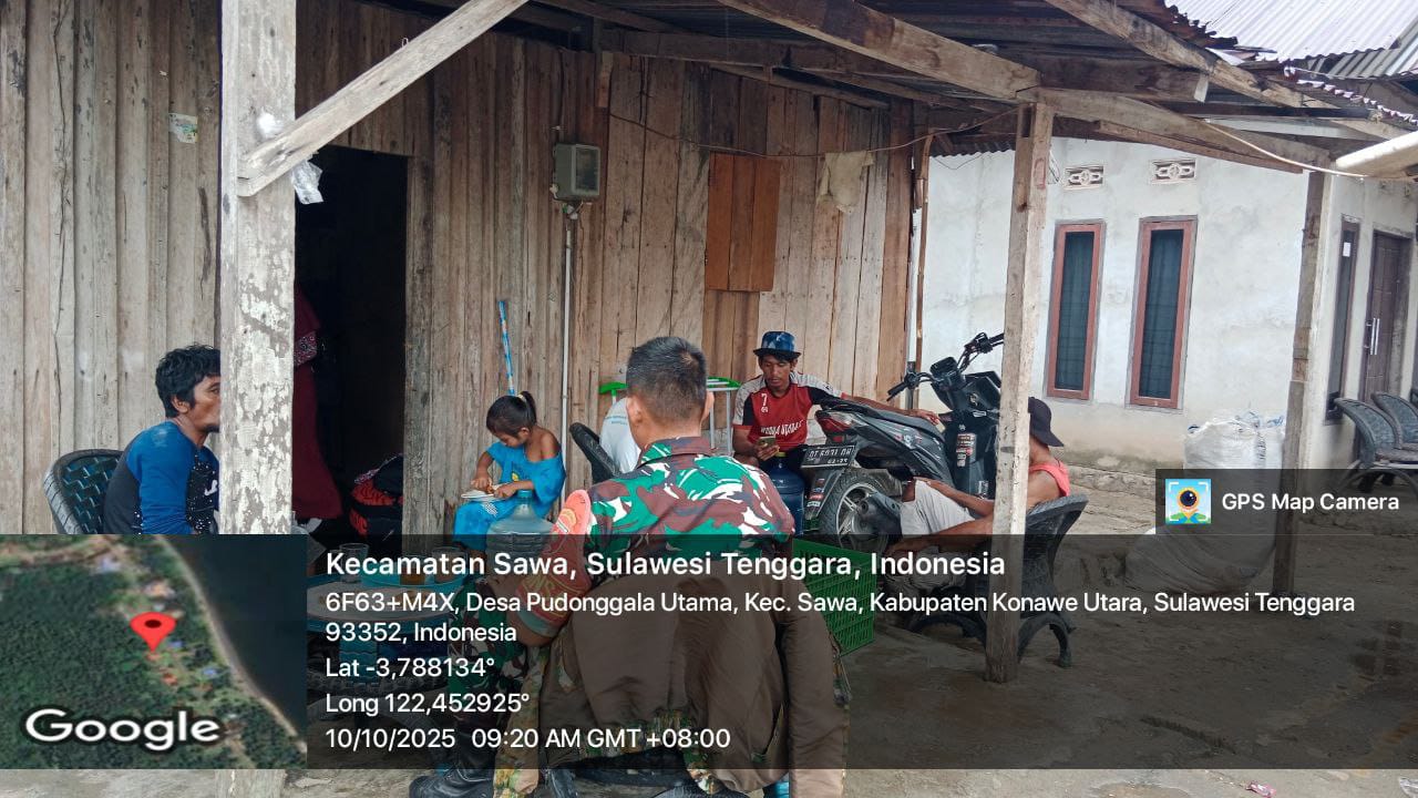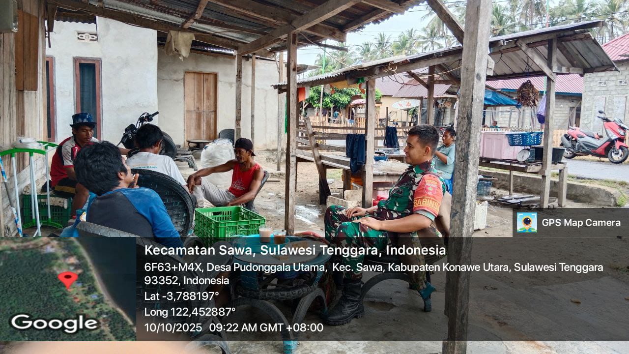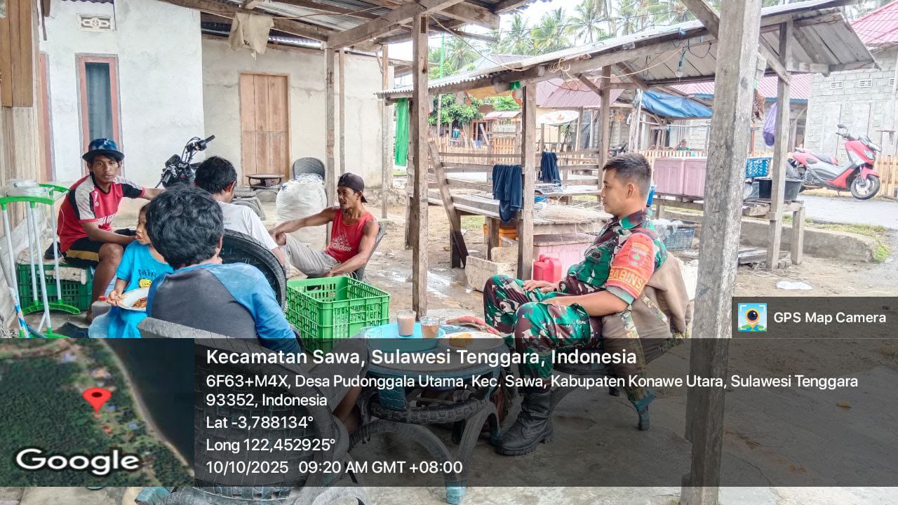 Konawe Utara – Dalam upaya mempererat hubungan sosial di wilayah binaan, Kopda Paisal Nusdin, Babinsa Koramil 1430-01/Lasolo, melaksanakan kegiatan pemantauan wilayah sekaligus komunikasi sosial (Komsos) di Desa Tobimaita, Kecamatan Motui, Kabupaten Konawe Utara, Jum’at (10/10/2025)