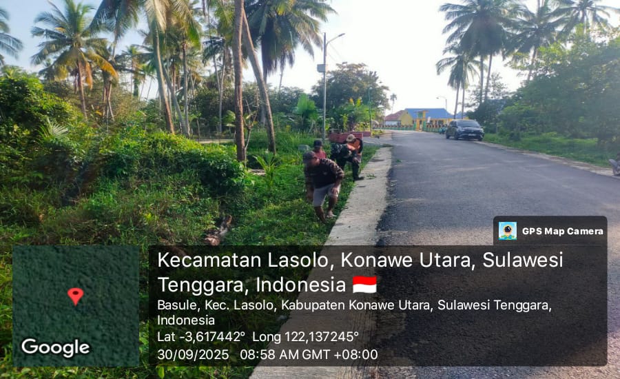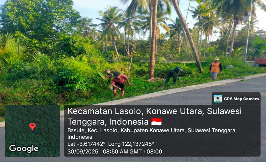 Konawe Utara – Dalam rangka mempererat kemanunggalan TNI dengan rakyat, Babinsa Koramil 1430-01/Lasolo, Serda Masbul, bersama masyarakat Desa Basule melaksanakan kegiatan Karya Bakti pada Selasa (30/9/2025) pagi. Kegiatan yang dimulai pukul 08.30 Wita ini berlangsung di Desa Basule, Kecamatan Lasolo, Kabupaten Konawe Utara, Sulawesi Tenggara.