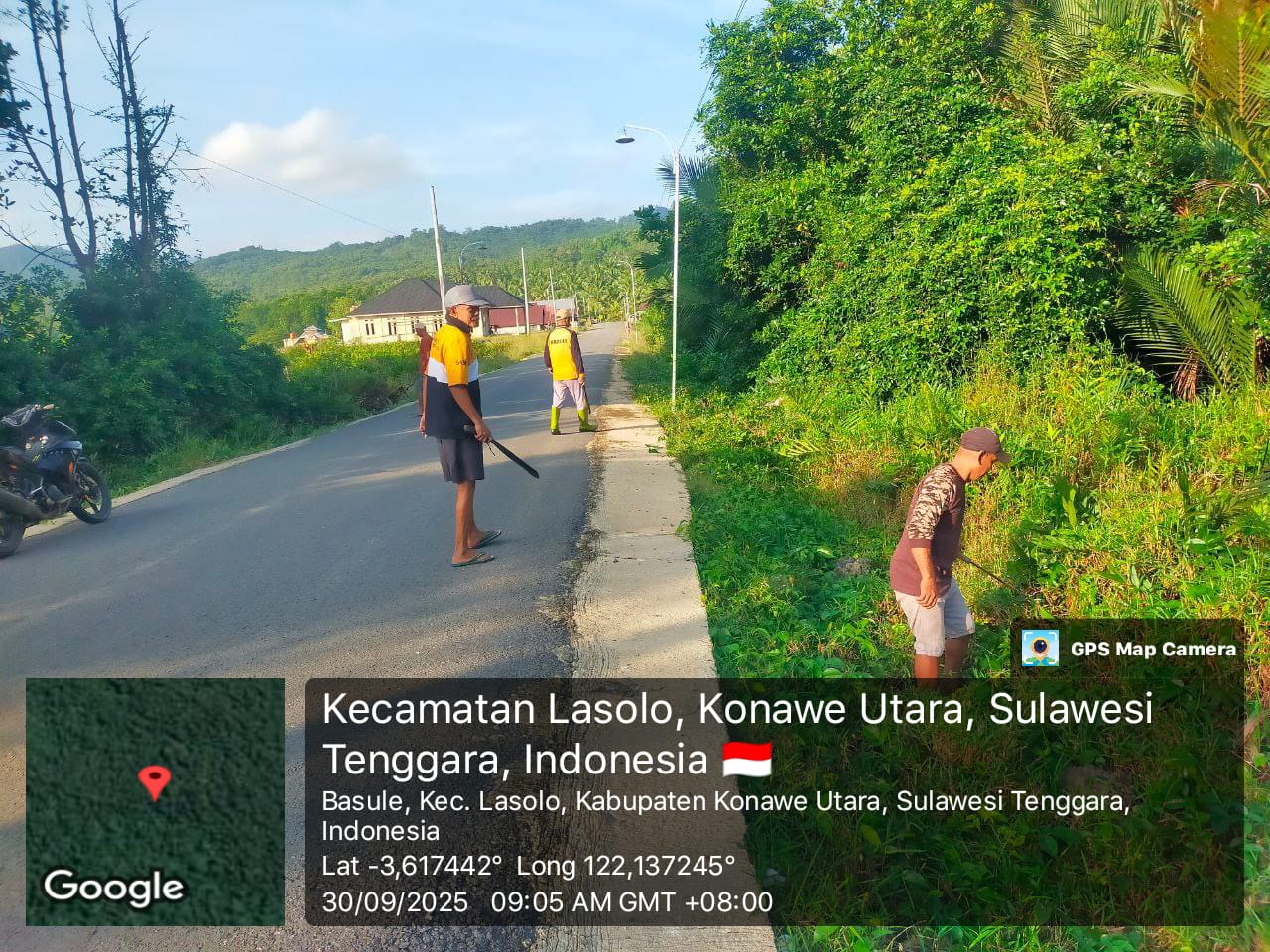 Babinsa Koramil 1430-01/Lasolo Gelar Karya Bakti di Desa Basule, Wujud Nyata Kepedulian TNI terhadap Kebersihan Lingkungan
