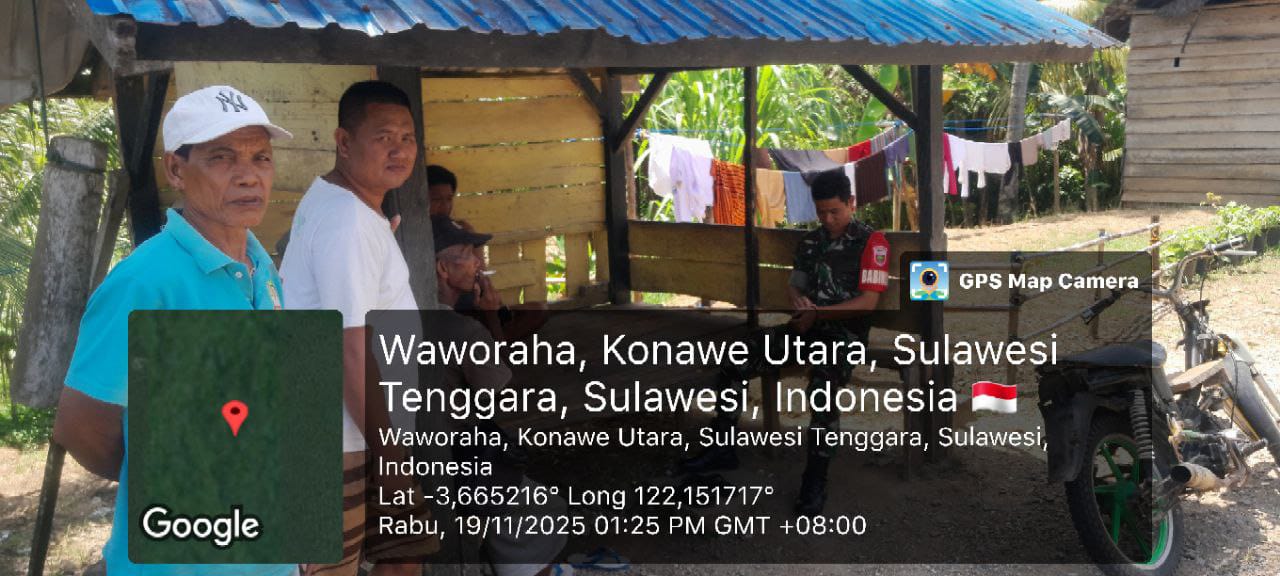 Konawe Utara – Dalam rangka menjaga kondusifitas wilayah binaan serta mempererat hubungan dengan masyarakat, Babinsa Koramil 1430-01/Lasolo Serda Bambang melaksanakan kegiatan pemantauan wilayah sekaligus Komunikasi Sosial (Komsos) di Desa Waworaha, Kecamatan Lasolo, Kabupaten Konawe Utara, pada Kamis, 20 November 2025 pukul 10.00 WITA.