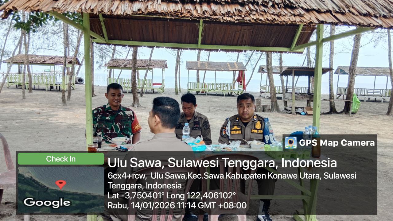 ‎Kegiatan tersebut berlangsung dalam suasana penuh keakraban di salah satu lokasi pantai Desa Ulusawa, dengan duduk bersama aparat dan warga setempat. Melalui dialog santai namun bermakna, Babinsa menyampaikan berbagai imbauan penting kepada masyarakat demi menjaga keharmonisan dan keamanan lingkungan.