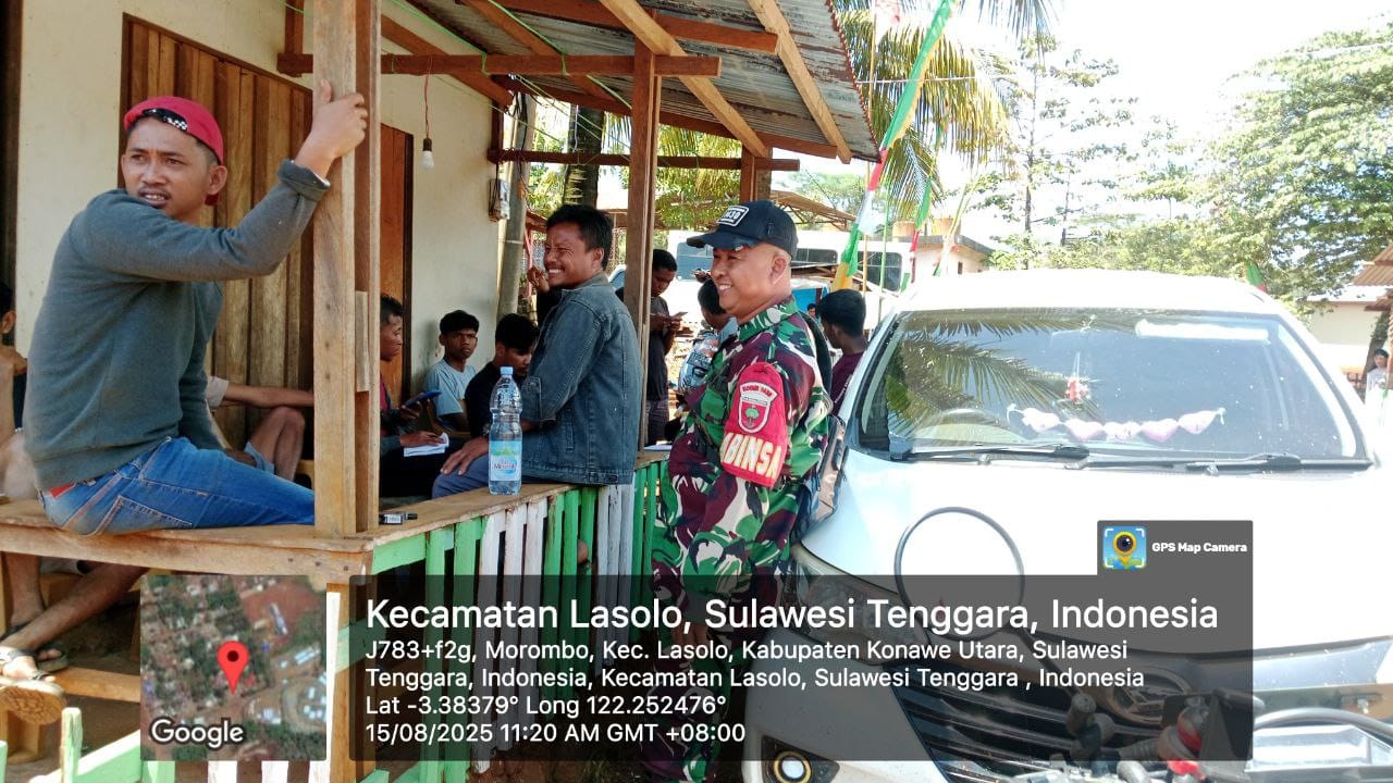 KONUT – Dalam rangka penguatan teritorial dan pembinaan pemberdayaan wilayah pertahanan konawe Utara, Kodim 1430/Konut dalam upaya menjaga kondusifitas wilayah dan mempererat silaturahmi dengan masyarakat, Kopka Muh. Rey Nardin S selaku Babinsa Koramil 1430-01/Lasolo melaksanakan kegiatan pemantauan wilayah sekaligus komunikasi sosial (komsos) di Desa Morombo, Kecamatan Lasolo Kepulauan, Kabupaten Konawe Utara. Jumat (15/8/2025)