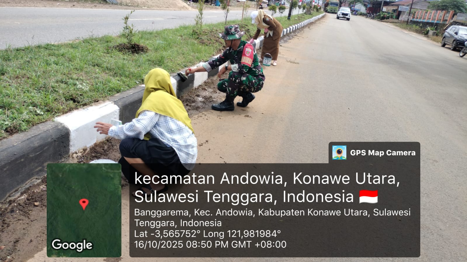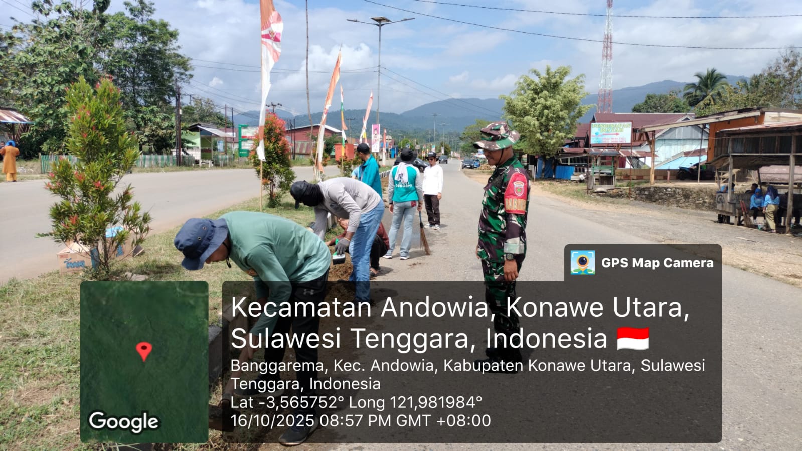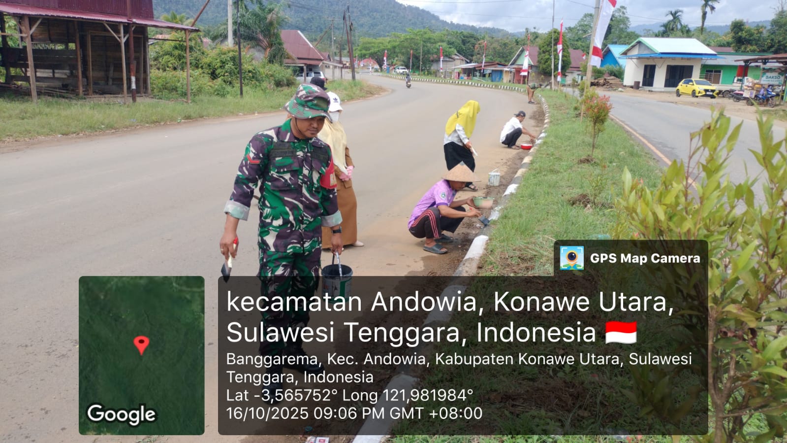 Konawe Utara — Dalam upaya menumbuhkan semangat gotong royong dan memperindah lingkungan desa, Babinsa Koramil 1430-02/Asera, Kopda K. Randuk, melaksanakan kegiatan Karya Bakti bersama warga masyarakat Desa Banggarema, Kecamatan Oheo, Kabupaten Konawe Utara, pada Kamis (16/10/2025)