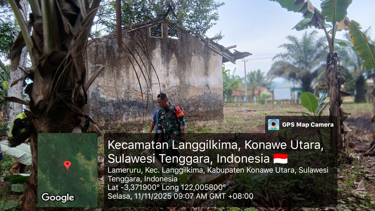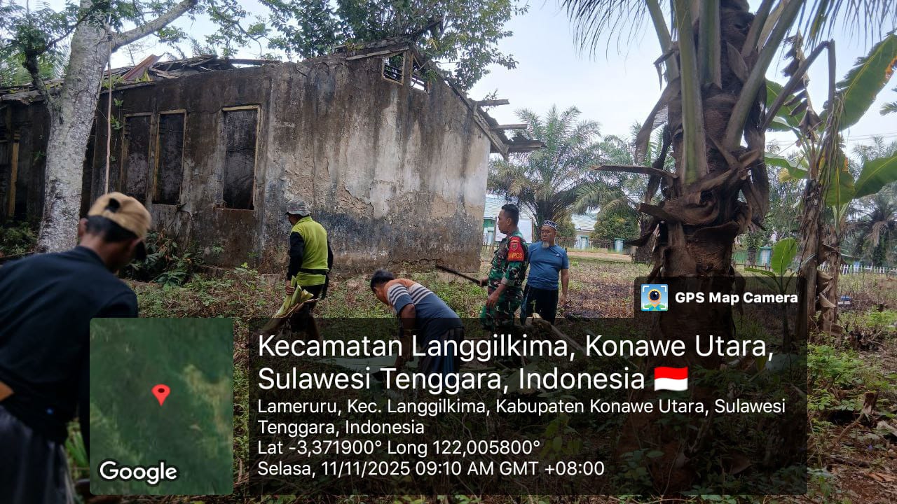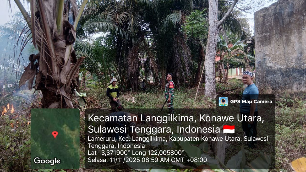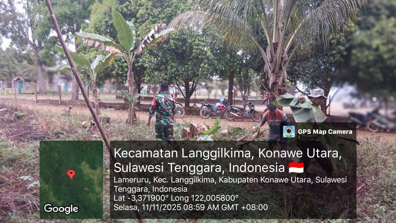 Konawe Utara – Dalam rangka mempererat kemanunggalan TNI dengan rakyat, Babinsa Koramil 1430-02/Asera, Serda Rusman, melaksanakan kegiatan Karya Bakti bersama masyarakat di Desa Lameruru, Kecamatan Langgikima, Kabupaten Konawe Utara, Selasa (11/11/2025).