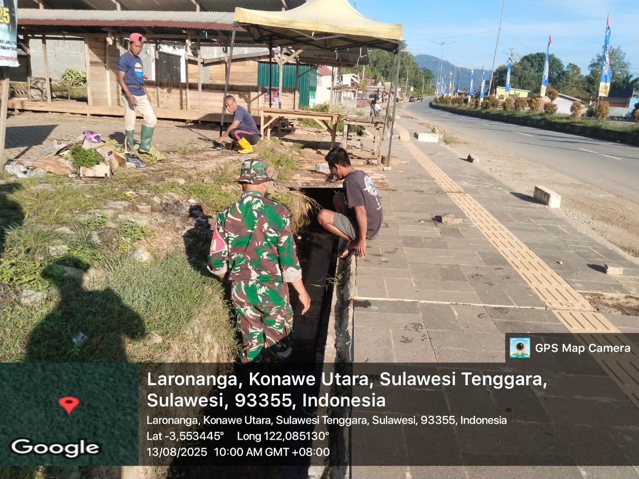 KONUT – Dalam rangka penguatan teritorial dan pembinaan pemberdayaan wilayah pertahanan konawe Utara, Kodim 1430/Konut dalam menjaga kebersihan lingkungan dan mencegah terjadinya penyumbatan saluran air, Serka Ruslin Babinsa Koramil 1430-02/Asera bersama masyarakat Desa Laronanga, Kecamatan Andowia, Kabupaten Konawe Utara, Sulawesi Tenggara, melaksanakan kegiatan karya bakti pembersihan got/drainase pada Rabu (13/08/2025).