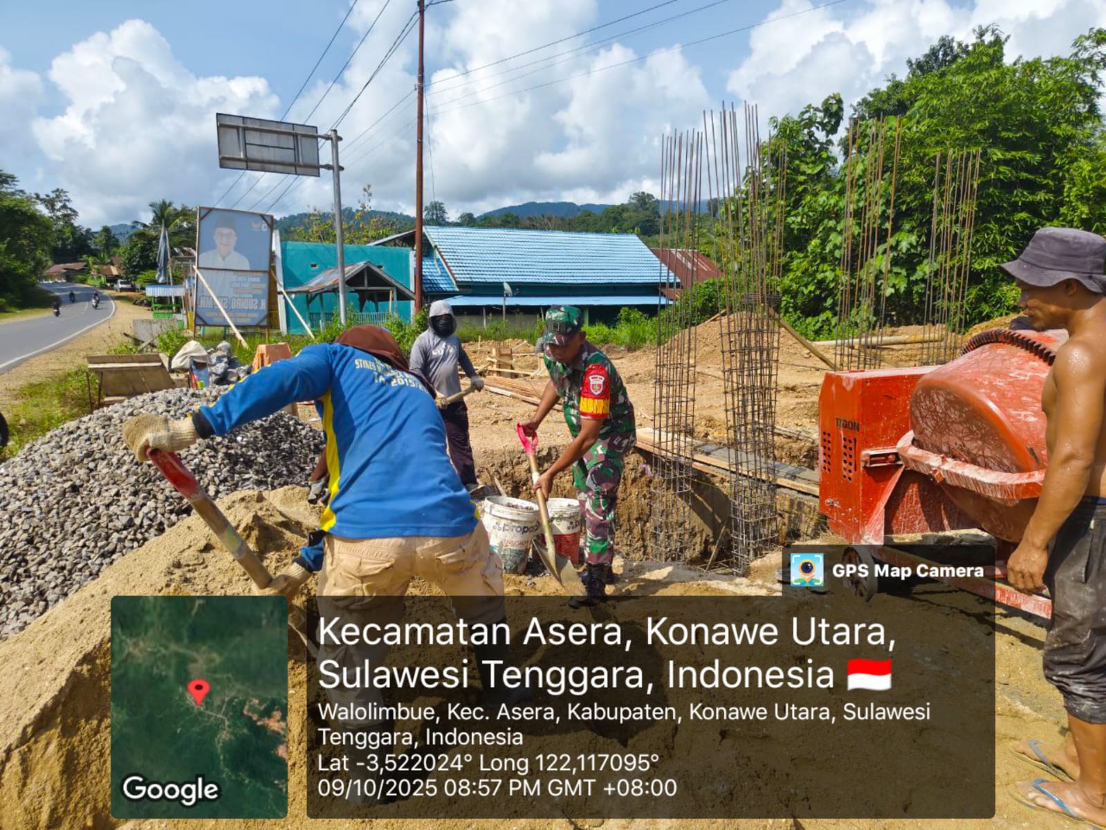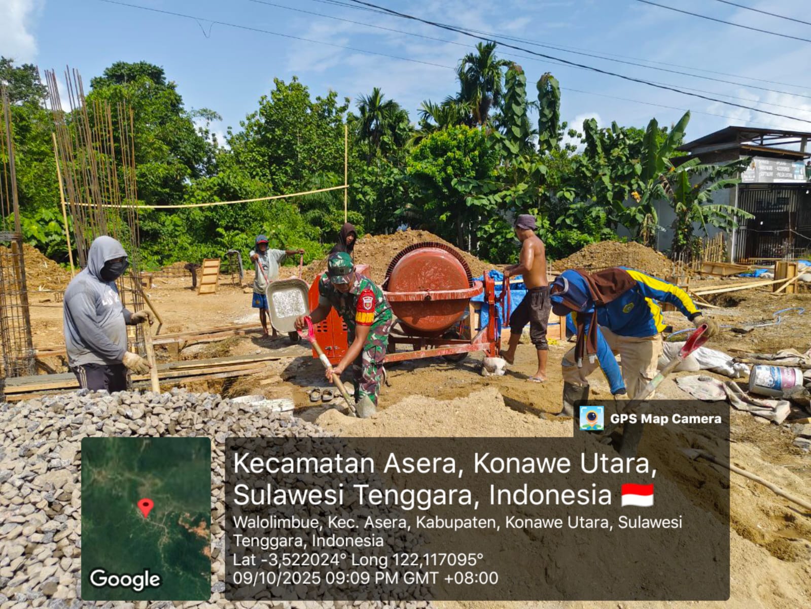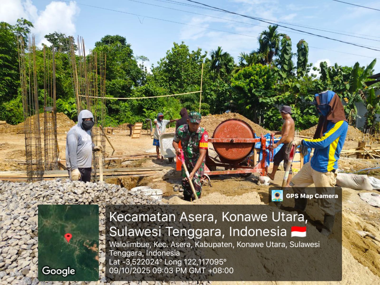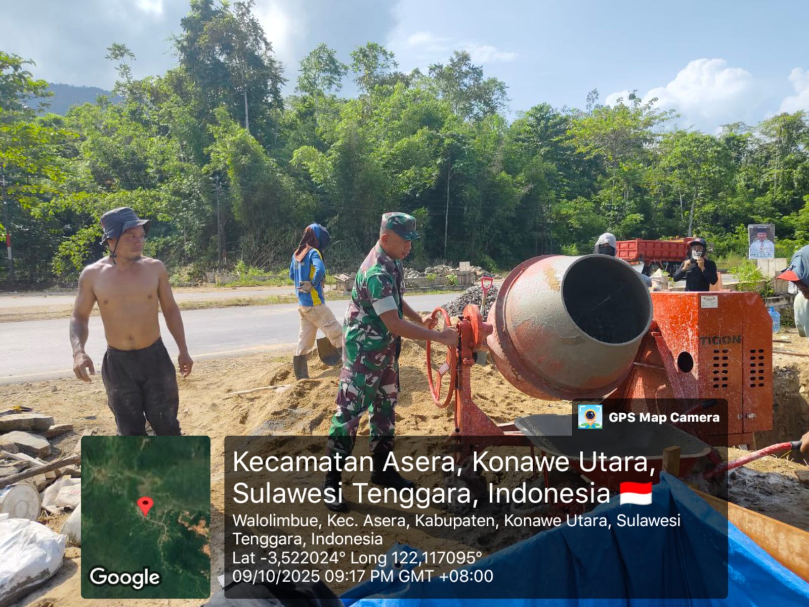 Konawe Utara — Dalam upaya mempererat kemanunggalan TNI dengan rakyat, Babinsa Koramil 1430-02/Asera, Serda Abdullah, melaksanakan kegiatan Karya Bakti bersama masyarakat Desa Walolimbue, Kecamatan Asera, Kabupaten Konawe Utara,Kamis (9/10/2025)