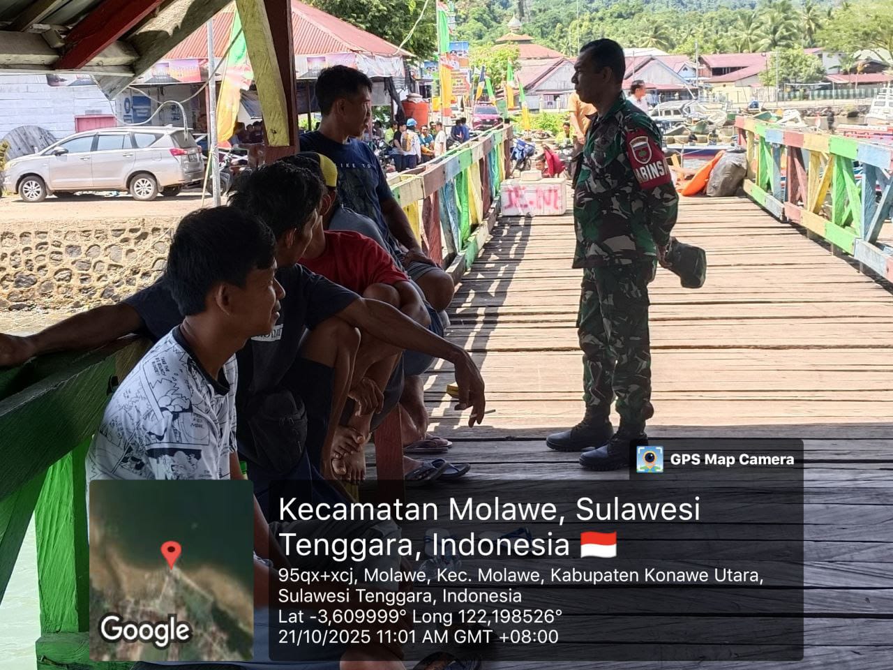 Konawe Utara – Dalam upaya mempererat hubungan sosial dan menjaga keharmonisan di wilayah binaannya, Serka Aswar, Babinsa Koramil 1430-01/Lasolo, melaksanakan pemantauan wilayah sekaligus komunikasi sosial (Komsos) bersama warga di Kelurahan Molawe, Kecamatan Lasolo, Kabupaten Konawe Utara, pada Selasa (21/10/2025)