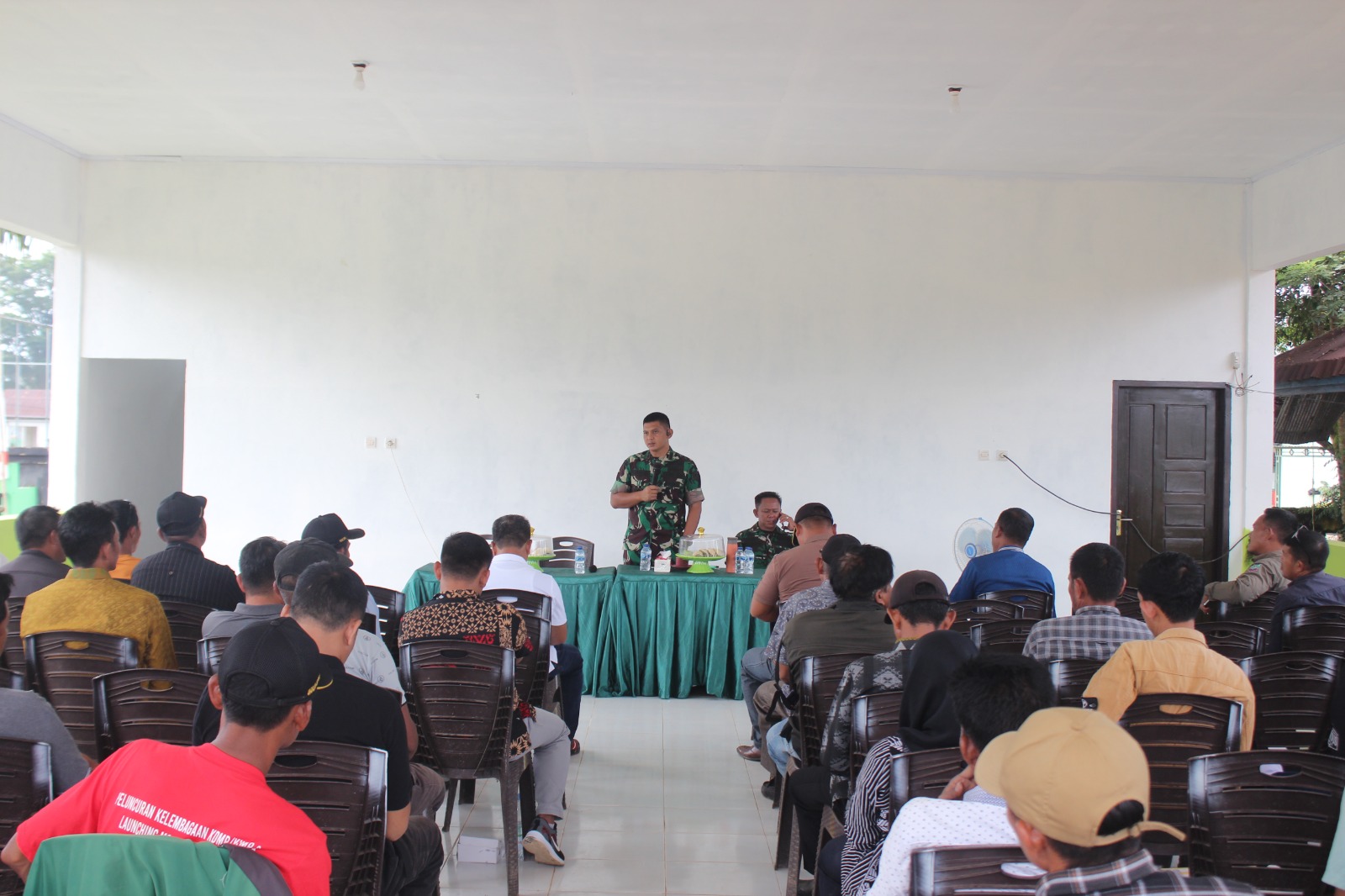 ‎Tampak dalam kegiatan tersebut, Letkol Kav Kuswara, S.I.P menyampaikan materi sosialisasi secara langsung di hadapan para camat, lurah, dan kepala desa wilayah binaan Koramil 1430-02/Asera. Suasana kegiatan berlangsung tertib dan penuh perhatian, di mana para peserta dengan serius menyimak penjelasan Dandim terkait pentingnya program KDKMP sebagai program unggulan pemerintah pusat.