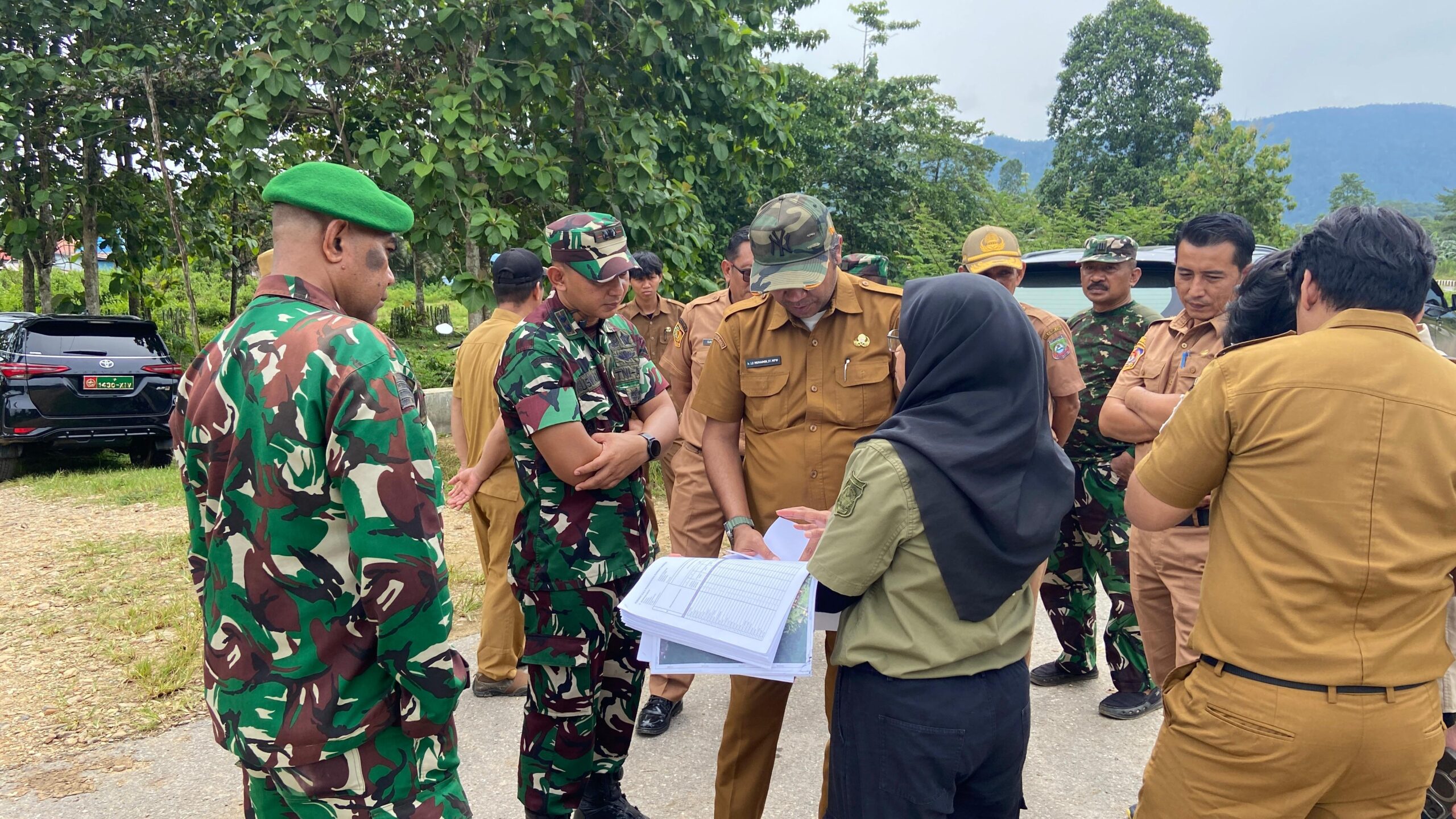 ‎Dalam kegiatan tersebut, Dandim bersama para pejabat daerah dan personel TNI melakukan peninjauan langsung kondisi medan serta jalur yang direncanakan menjadi akses jalan poros menuju Batalyon TP. Diskusi dan koordinasi juga dilakukan di lapangan dengan melihat dokumen perencanaan pembangunan guna memastikan langkah-langkah teknis yang akan dilakukan dapat berjalan secara efektif dan tepat sasaran.