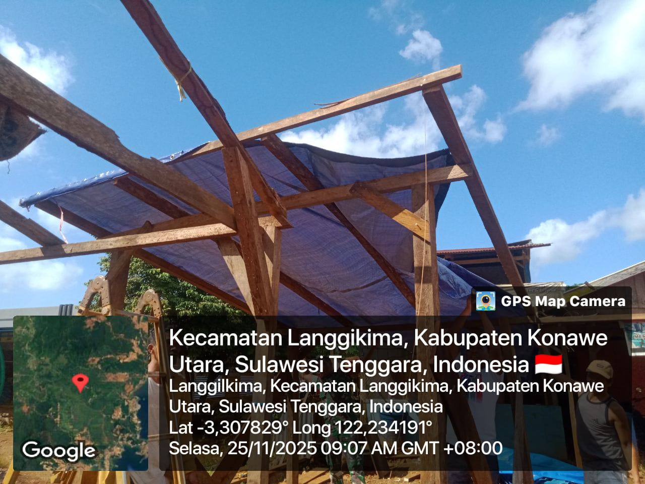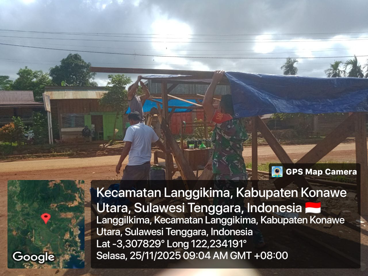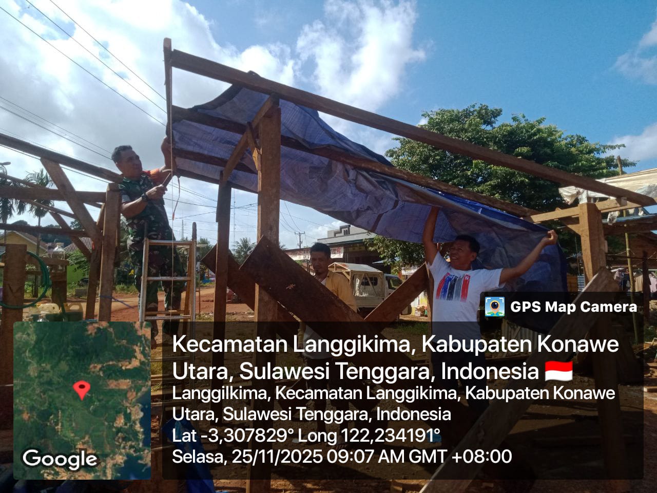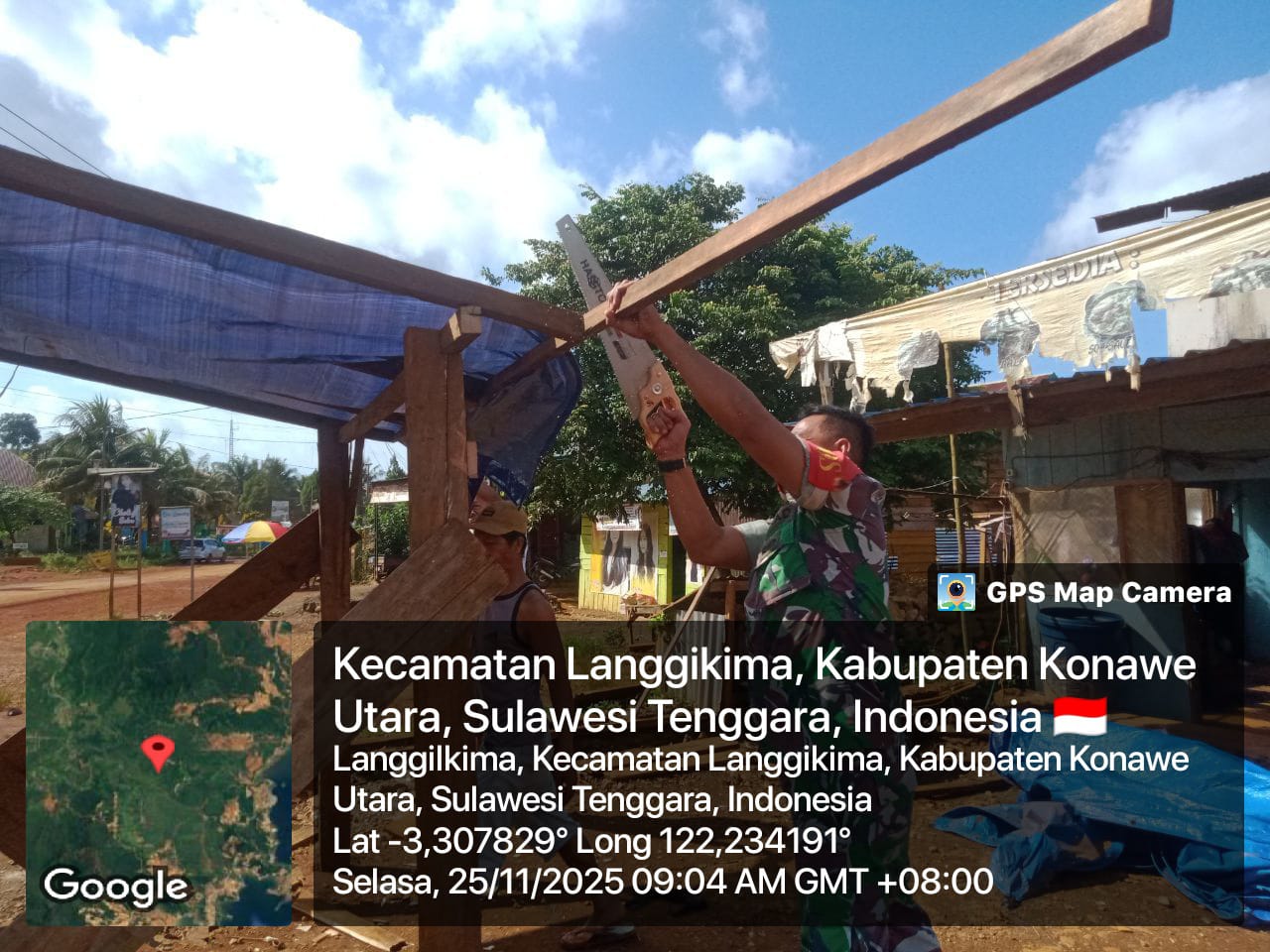 Konawe Utara – Dalam rangka penguatan teritorial dan pembinaan pemberdayaan wilayah, Babinsa Koramil 1430-02/Asera, Serda Rusman, melaksanakan kegiatan Karya Bakti bersama warga di Pasar Tradisional Kelurahan Langgilkima, Kecamatan Langgilkima, Kabupaten Konawe Utara, Selasa (25/11/2025).