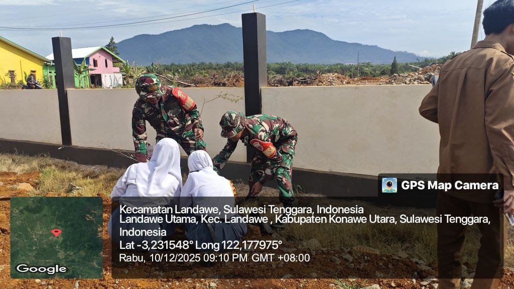 Konawe Utara- Dalam rangka penguatan teritorial dan pembinaan pemberdayaan wilayah, Babinsa Koramil 1430-02/Asera melaksanakan kegiatan Karya Bakti pembersihan lingkungan yang berlokasi di Desa Landawe Utama, Kecamatan Landawe, Kabupaten Konawe Utara, pada Rabu 10 Desember 2025 pukul 08.00 Wita. Kegiatan ini merupakan bagian dari upaya TNI AD dalam meningkatkan kepedulian terhadap kebersihan lingkungan dan mendorong peran serta masyarakat dalam menjaga kenyamanan wilayah.