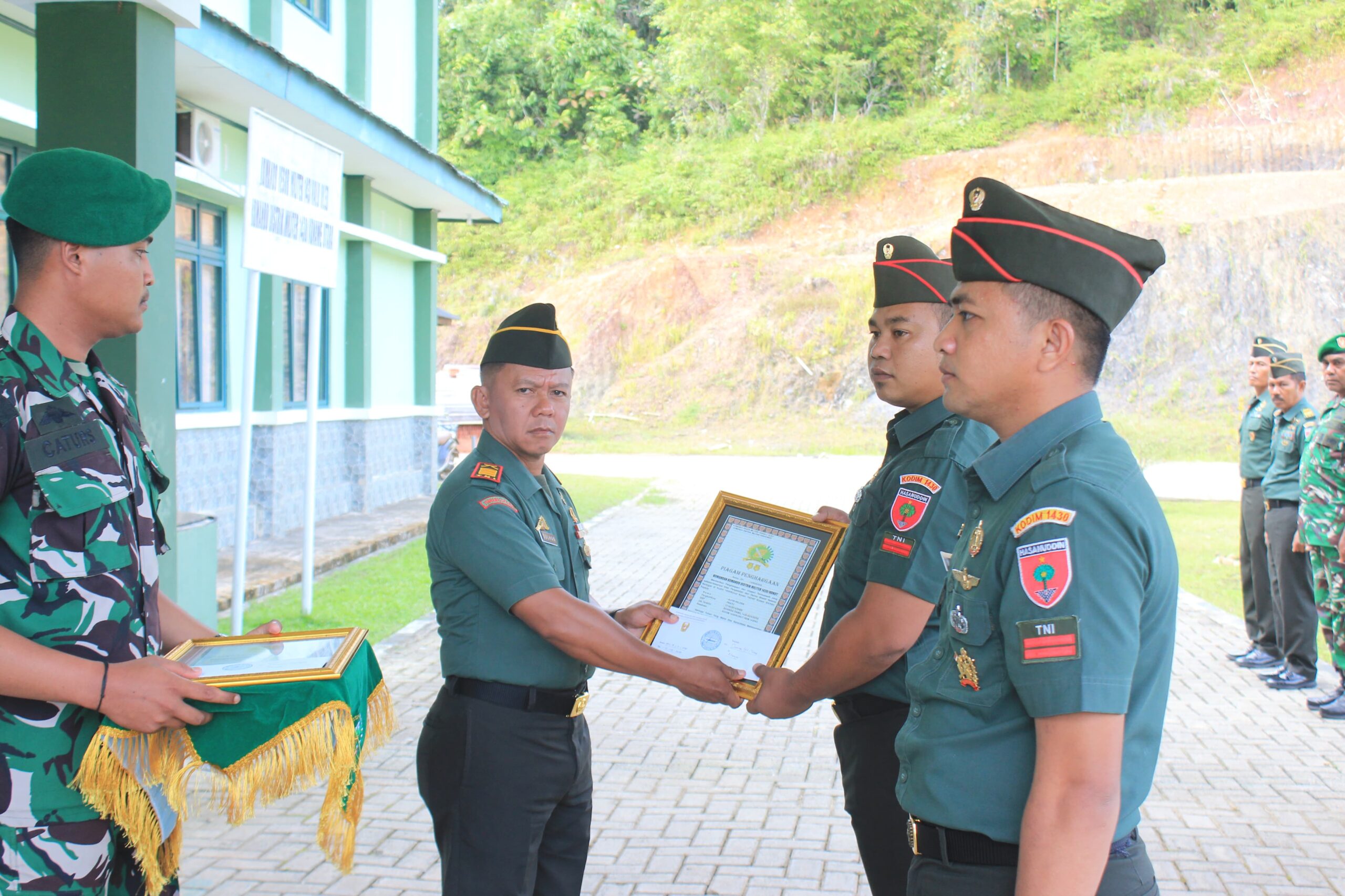 Acara tradisi pindah satuan ditandai dengan penyerahan piagam penghargaan dan ucapan selamat dari keluarga besar Kodim 1430/Konut kepada prajurit yang melaksanakan pindah tugas.