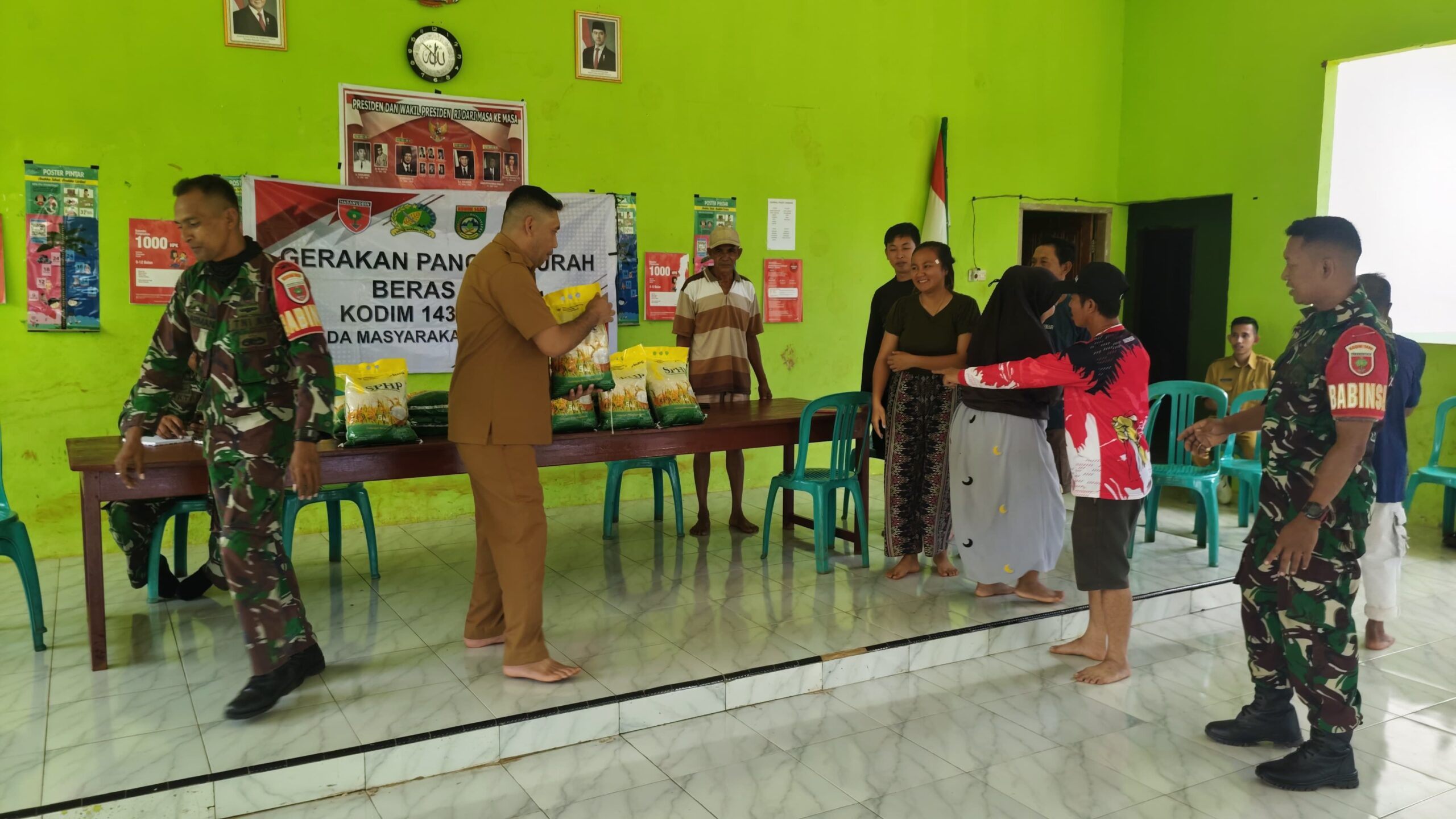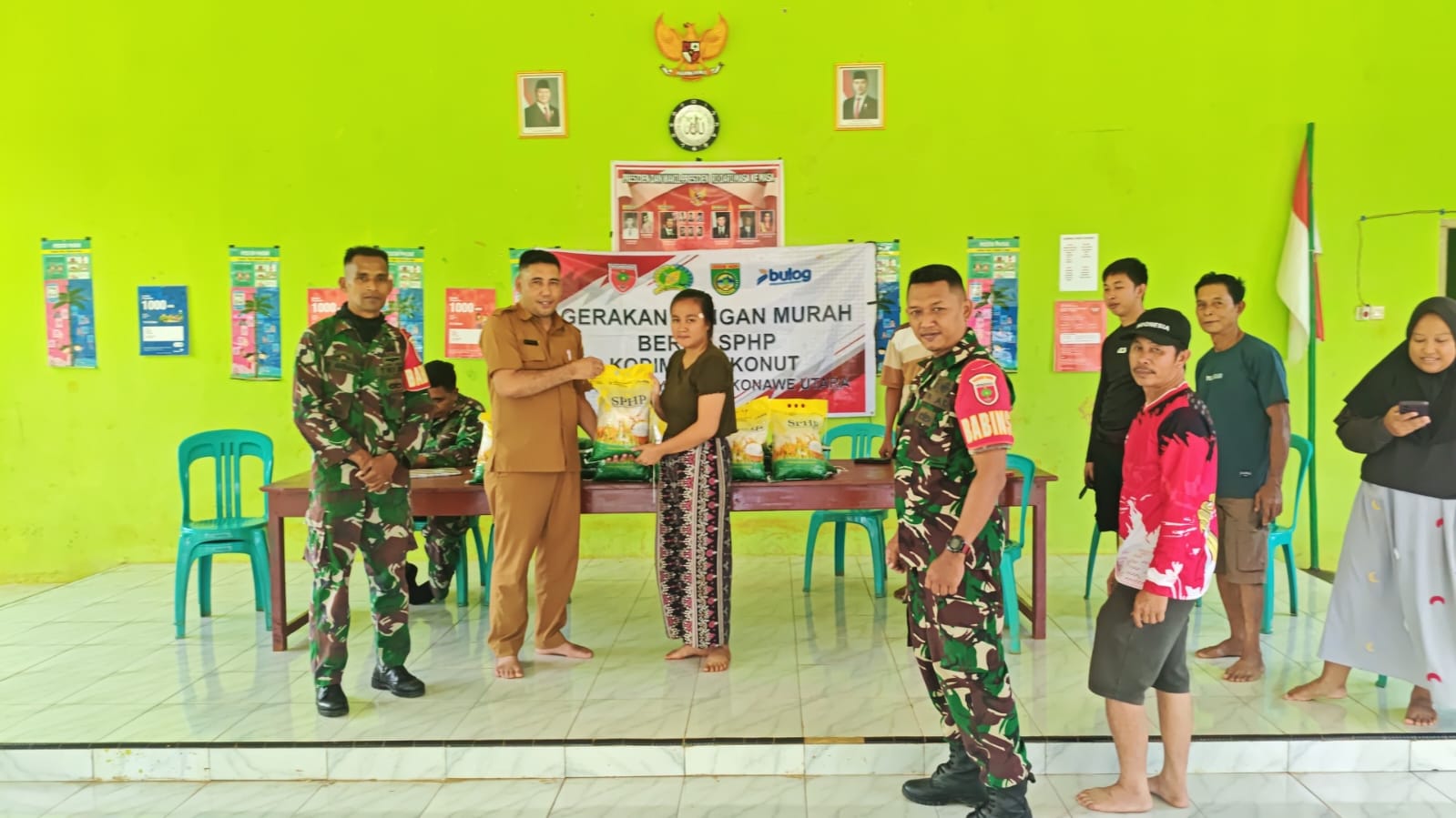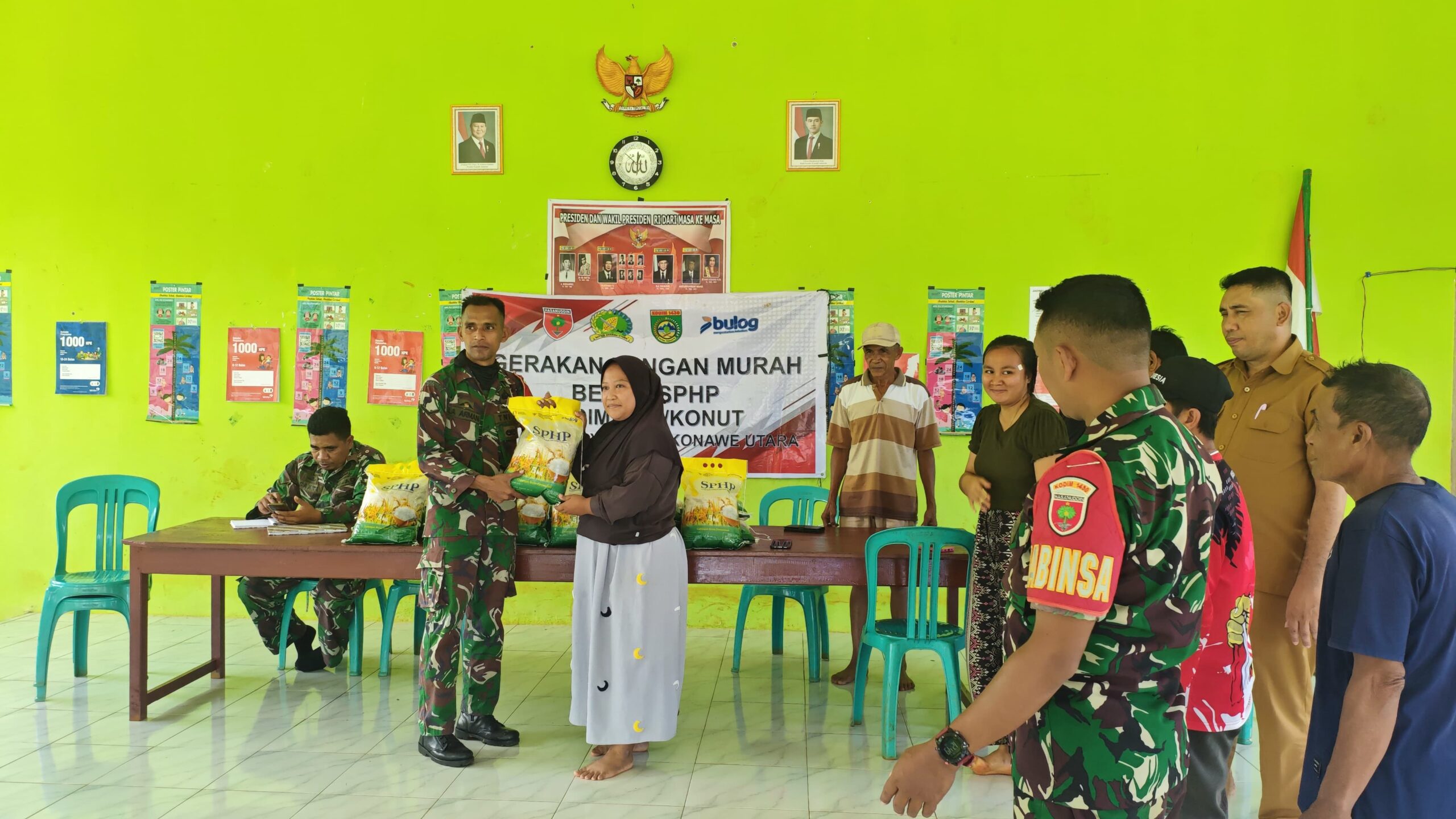 Kegiatan pasar murah ini dihadiri langsung oleh personel TNI dari Kodim 1430/Konut dan Babinsa setempat, serta perangkat desa dan masyarakat penerima manfaat. Dalam kegiatan tersebut, warga dengan antusias membeli beras SPHP dengan harga terjangkau guna meringankan kebutuhan pokok sehari-hari.