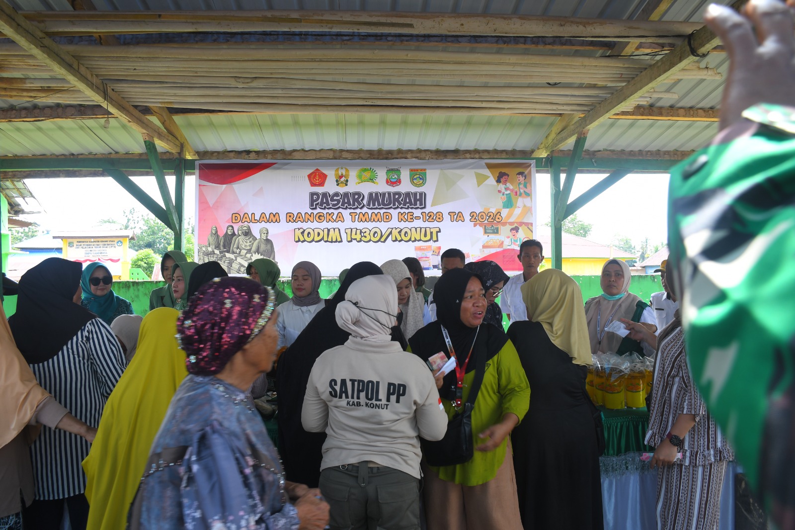 <span;>KONUT – Dalam rangkaian kegiatan TNI Manunggal Membangun Desa (TMMD) ke-128 Tahun Anggaran 2026, Kodim 1430/Konawe Utara kembali menunjukkan kepeduliannya terhadap kesejahteraan masyarakat melalui penyelenggaraan Pasar Murah yang berlangsung dengan penuh antusias dan kehangatan yang digelar di Kelurahan Andowia, Kecamatan Andowia, Kabupaten Konawe Utara, Rabu (22/4/2026).