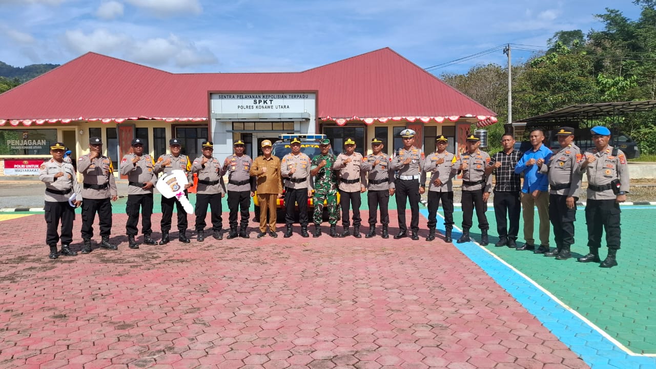 > “TNI akan selalu mendukung setiap langkah Polri dalam memberikan pelayanan terbaik kepada masyarakat, demi terciptanya situasi yang aman, tertib, dan kondusif di Kabupaten Konawe Utara,” ungkap Dandim.