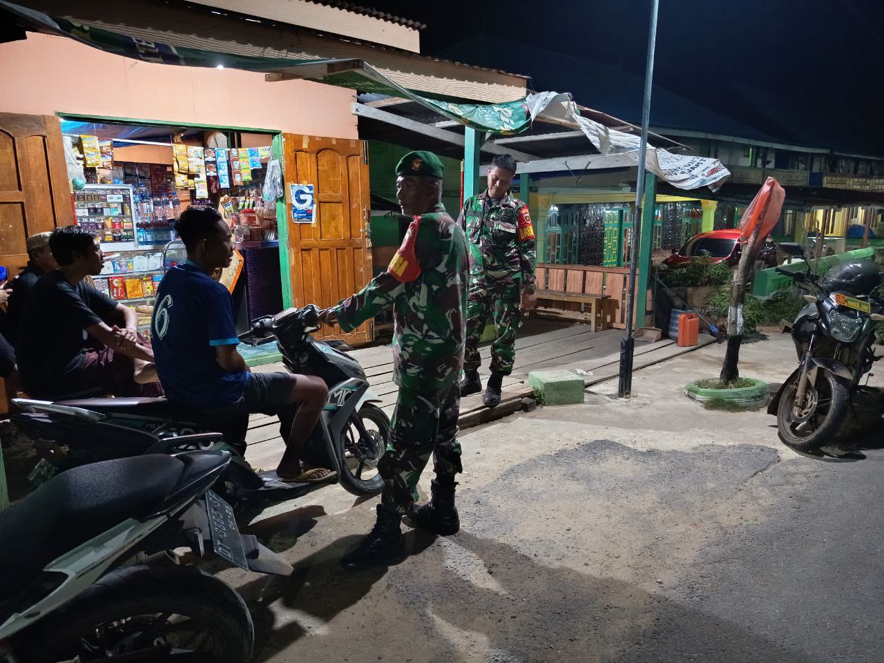 ‎Pada pelaksanaan patroli, personel TNI tampak melakukan pendekatan humanis kepada warga, termasuk memberikan imbauan kamtibmas serta mengajak masyarakat untuk bersama-sama menjaga keamanan lingkungan. Seperti terlihat pada foto, anggota TNI berdialog langsung dengan warga di sekitar pertokoan dan pemukiman, sebagai bentuk komunikasi sosial dan upaya preventif mencegah potensi gangguan keamanan.