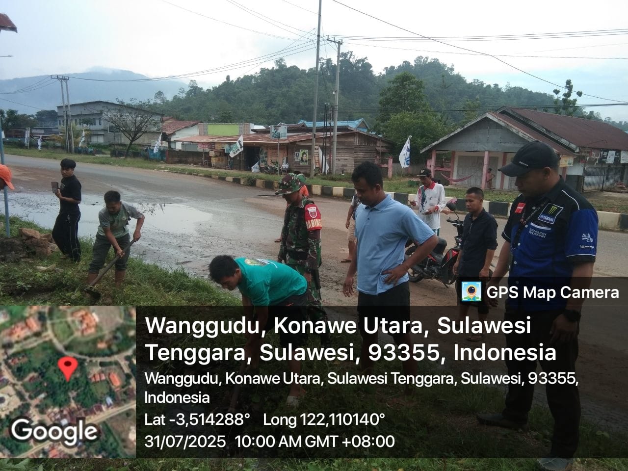 KONUT – Dalam rangka penguatan teritorial dan pembinaan pemberdayaan wilayah pertahanan konawe Utara, Kodim 1430/Konut dalam Semangat kebersamaan dan kepedulian terhadap lingkungan kembali ditunjukkan oleh Babinsa Koramil 1430-02/Asera, Sertu Syawaludin Makati, yang bersama masyarakat Desa Wanggudu, Kecamatan Asera, Kabupaten Konawe Utara (Sulawesi Tenggara), melaksanakan kegiatan karya bakti pada hari Kamis, (31/7/2025)